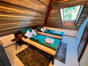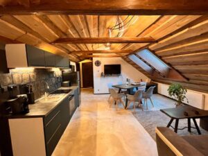 Kapacita apartmánu je max pro 8 osob, součástí jsou 3 koupelny, kuchyňský kout včetně ledničky, myčky, kávovaru a kontaktního grilu, obývací pokoj s krbovými kamny, 3 ložnice, klimatizace