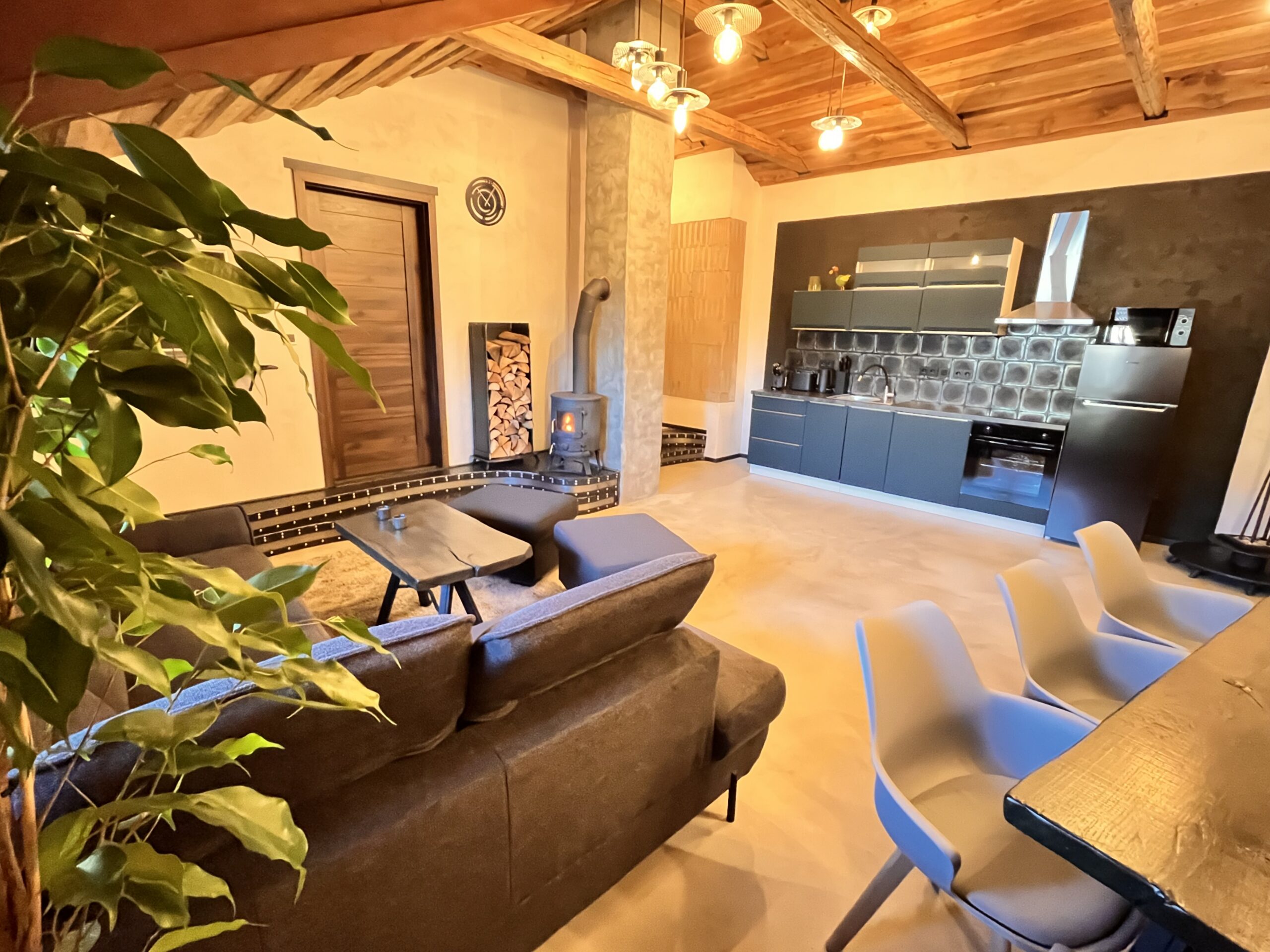 Kapacita apartmánu je max pro 8 osob, součástí jsou 3 koupelny, kuchyňský kout včetně ledničky, myčky, kávovaru a kontaktního grilu, obývací pokoj s krbovými kamny, 3 ložnice, klimatizace